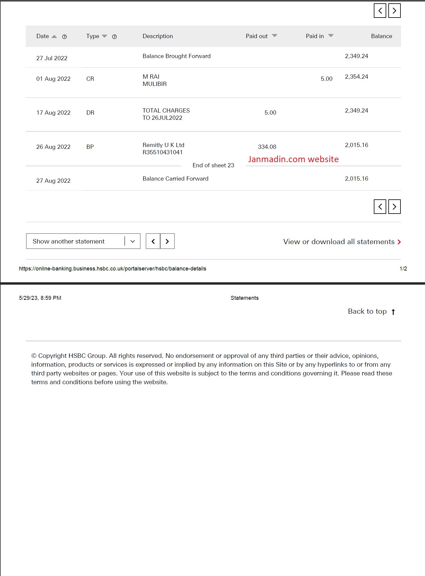 5 | Bank Statement Sep/Oct 23 | View Download |